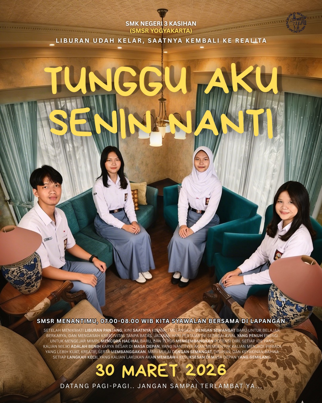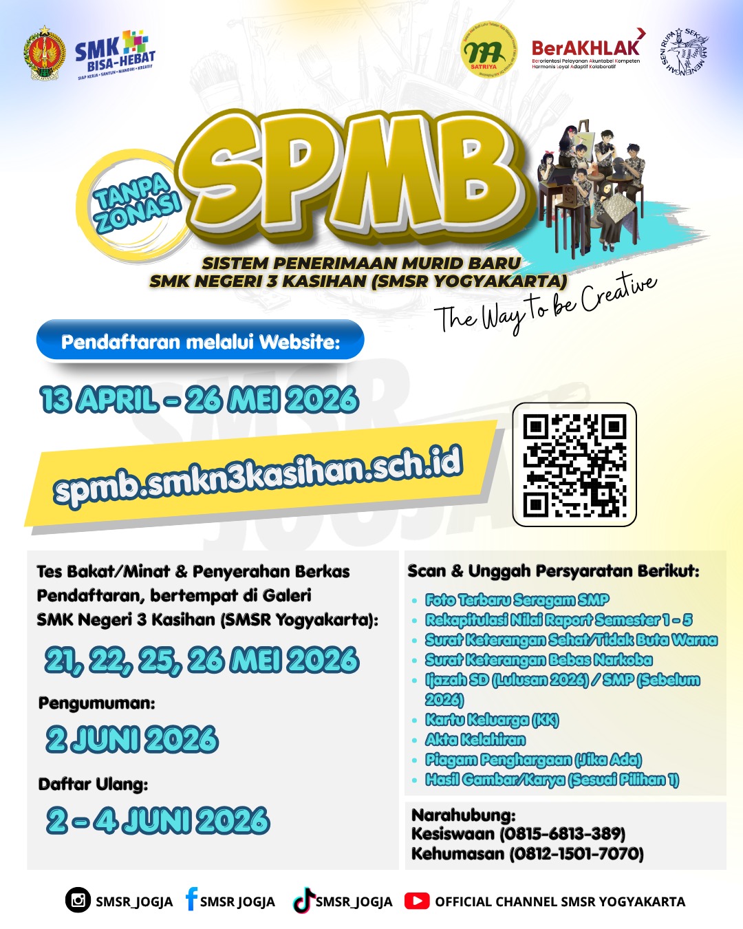 Halo sobat SMSR Yogyakarta, para calon kreator masa depan.. Siap upgrade skill dan jadi bagian dari sekolah seni pa...